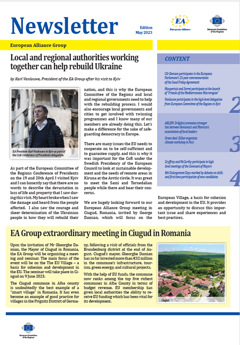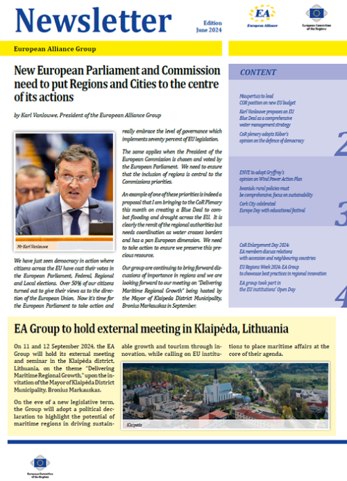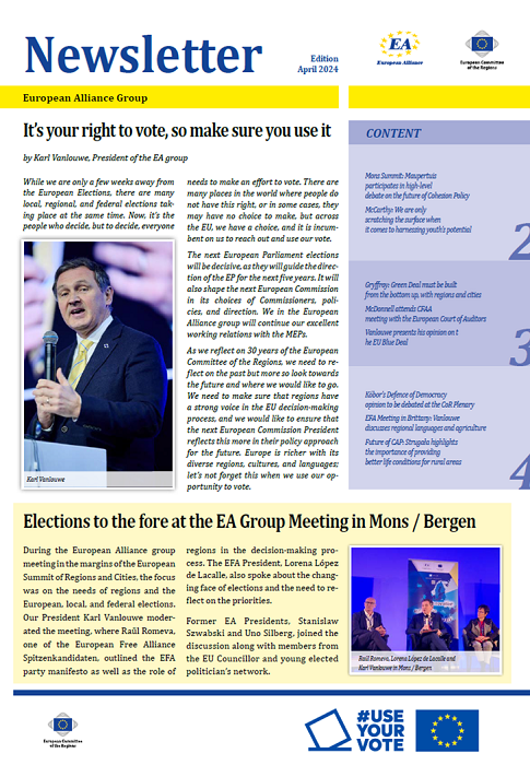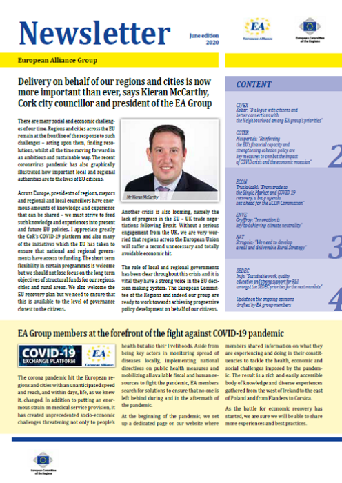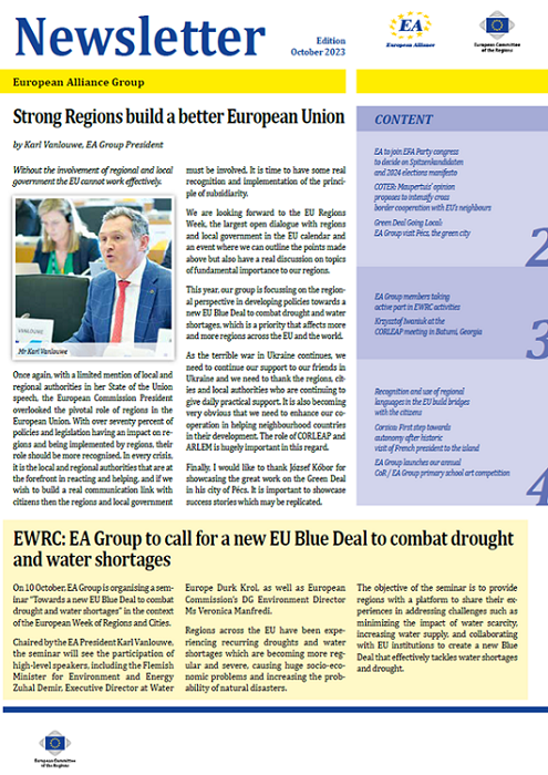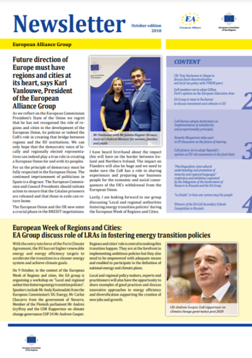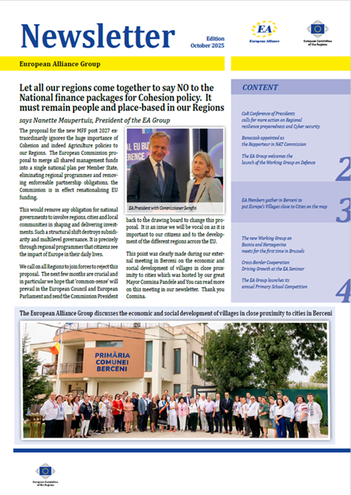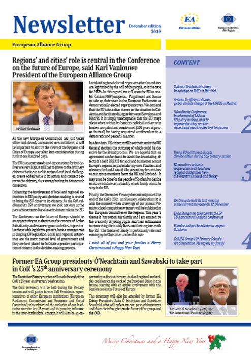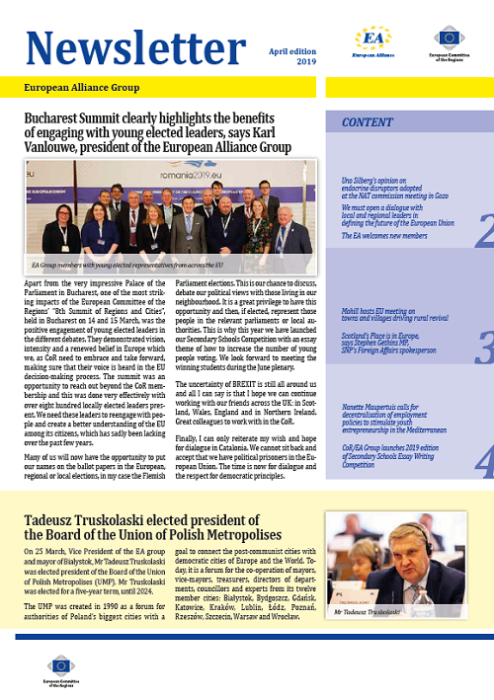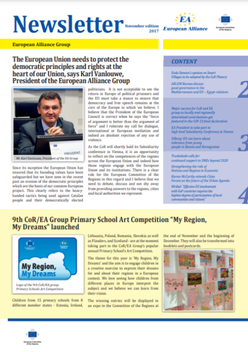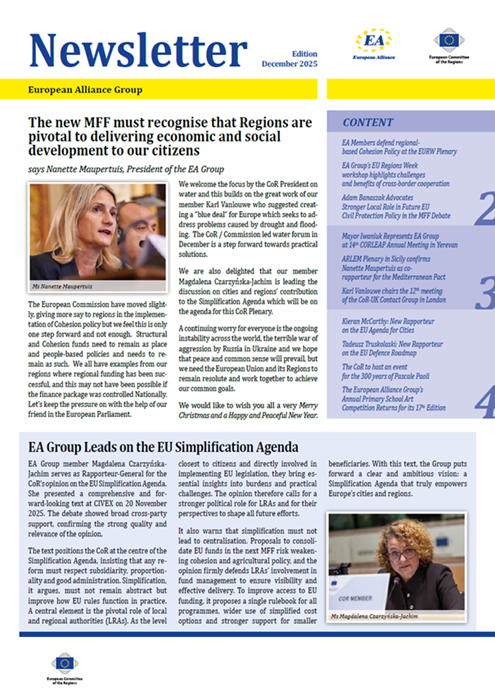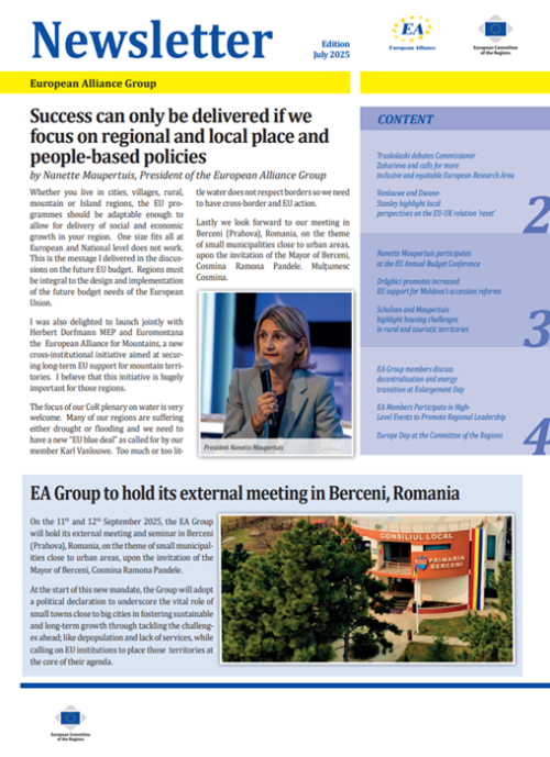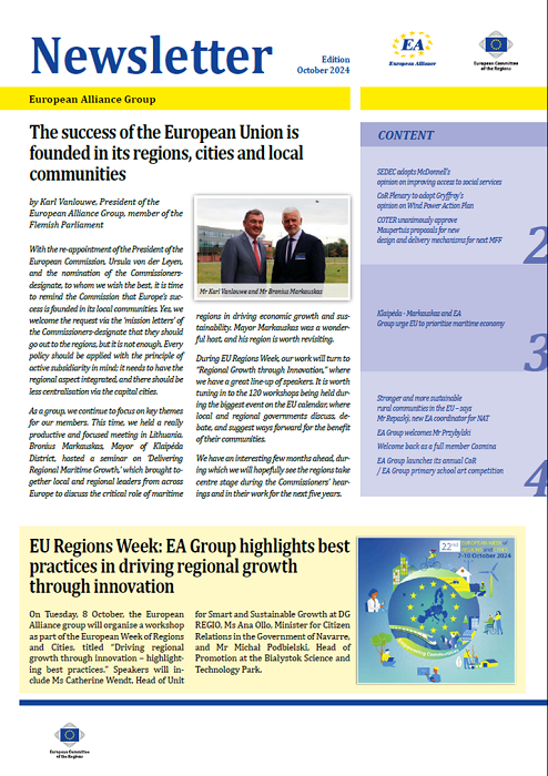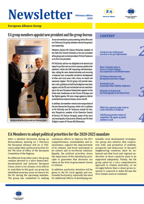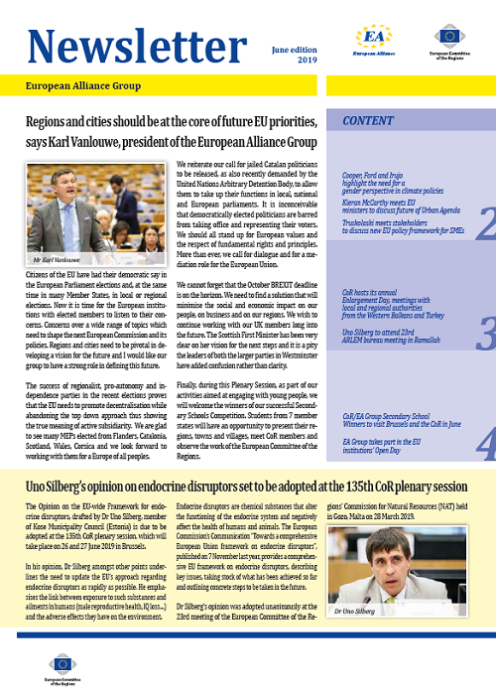​​​​​​​​​​The Newsletters of the EA group cover the main activities of our members. The Newsletters are published five times a year, before each plenary sessio​n of the Committee of the Regions.​