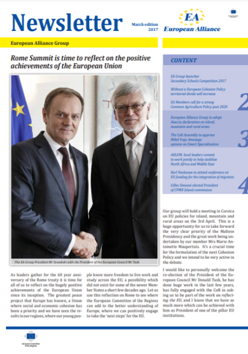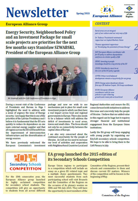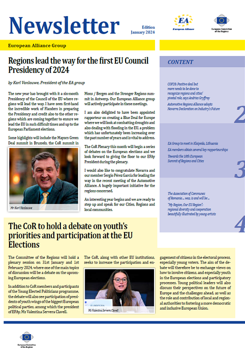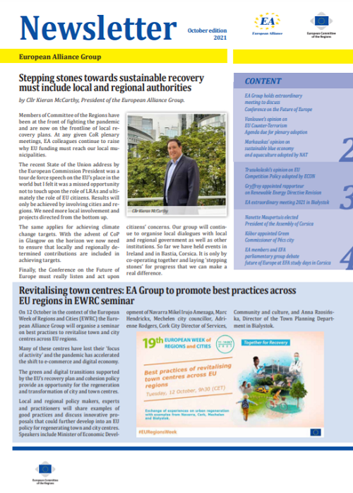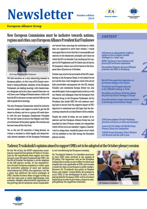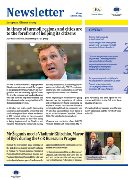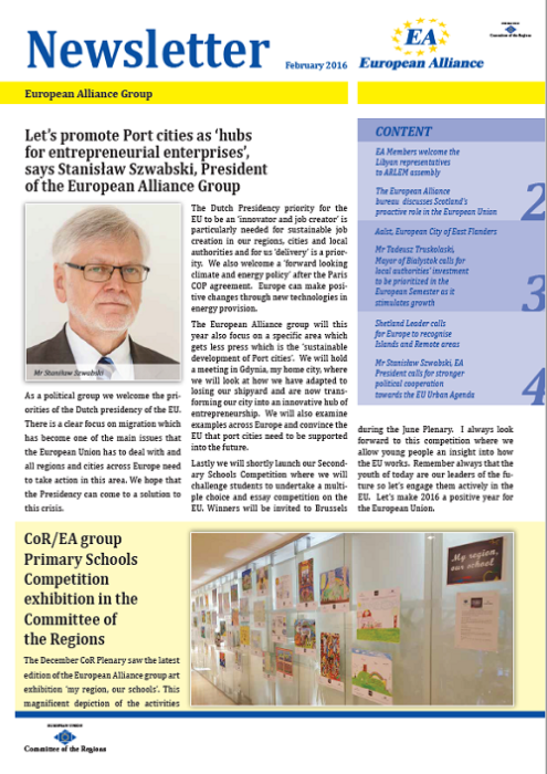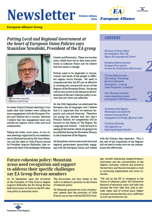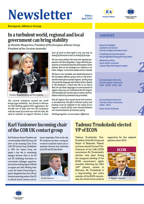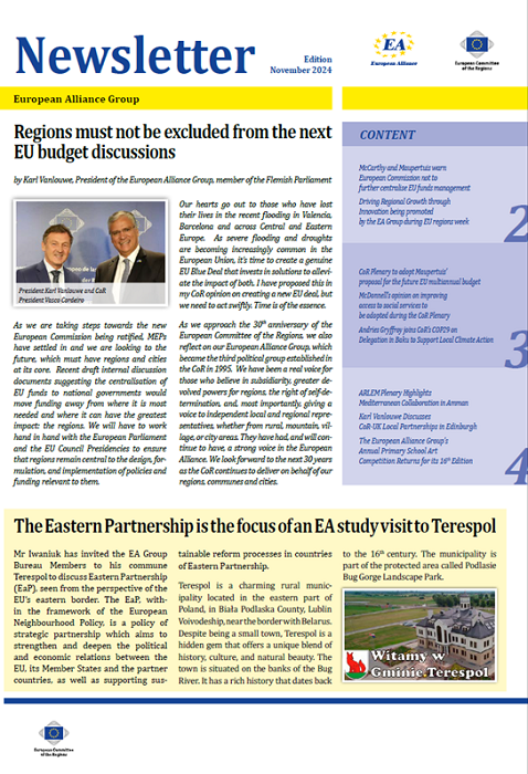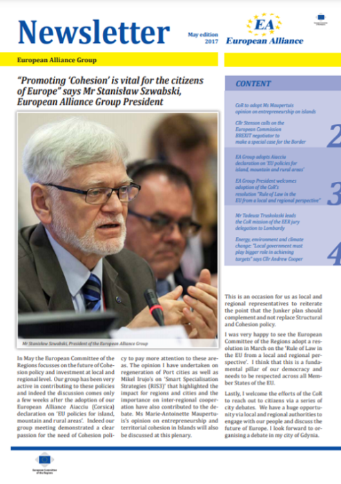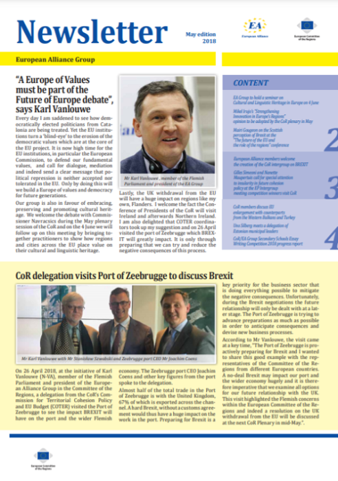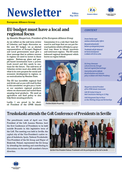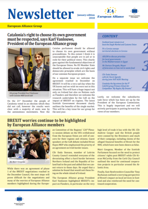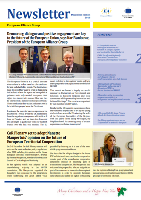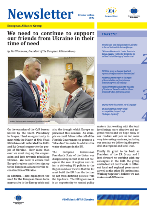 ​​​​​​​​​​The Newsletters of the EA group cover the main activities of our members. The Newsletters are published five times a year, before each plenary sessio​n of the Committee of the Regions.​