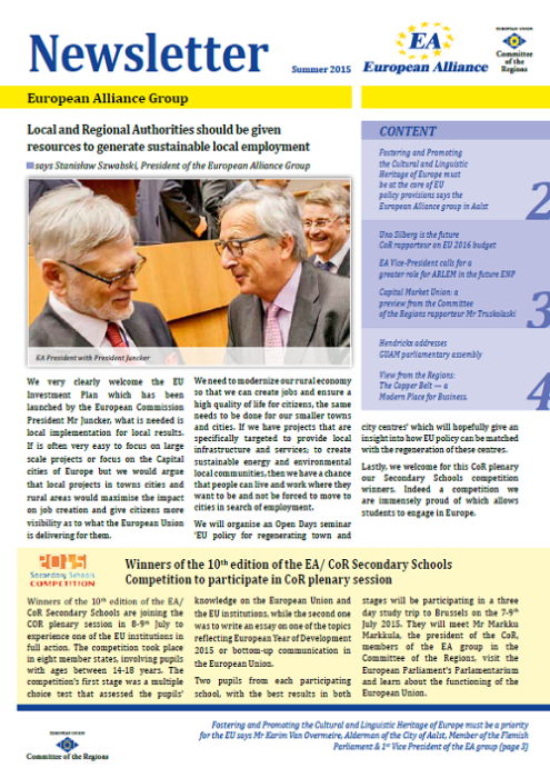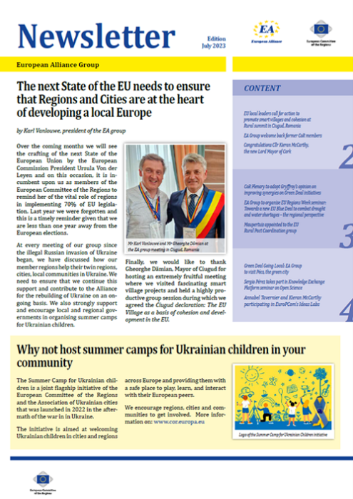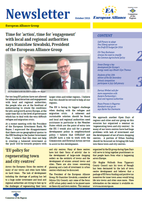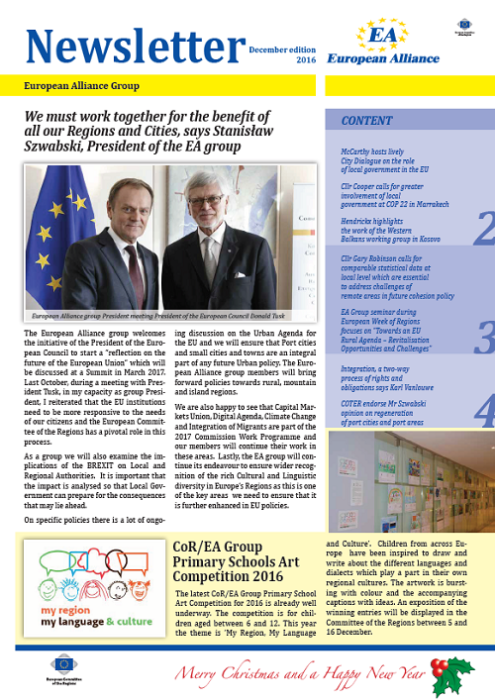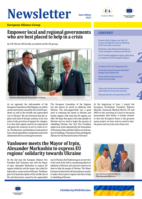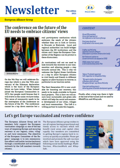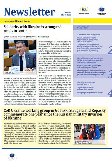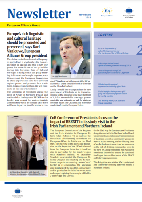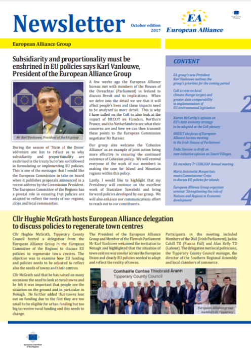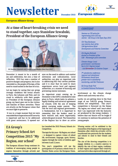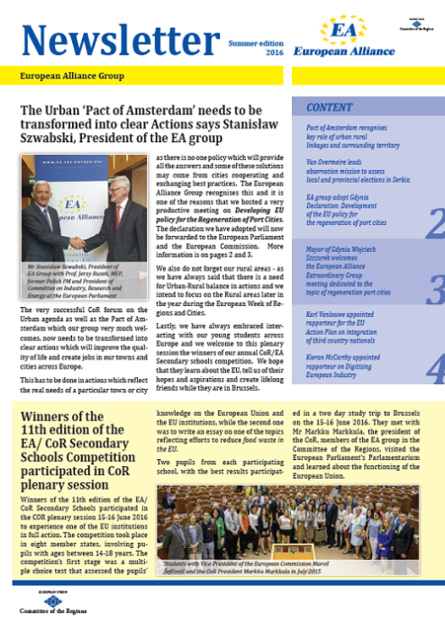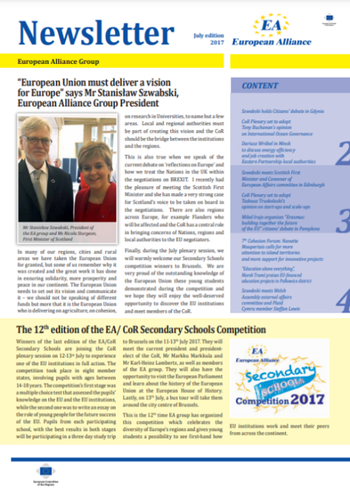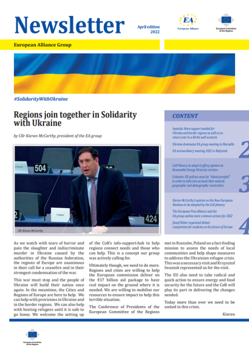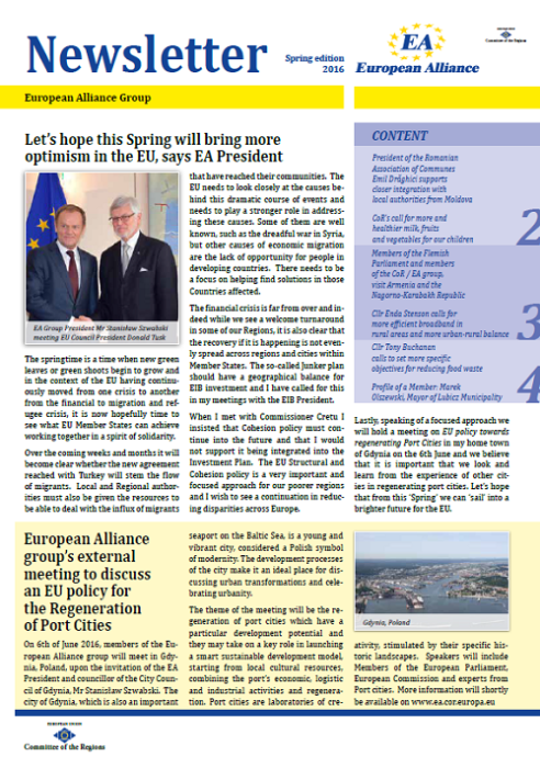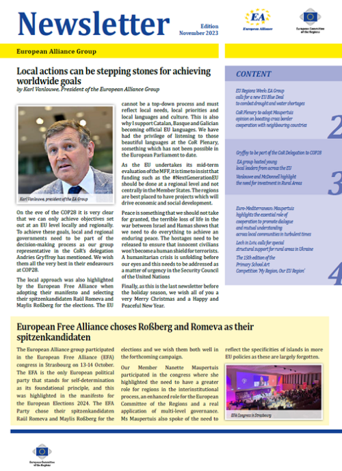 ​​​​​​​​​​The Newsletters of the EA group cover the main activities of our members. The Newsletters are published five times a year, before each plenary sessio​n of the Committee of the Regions.​